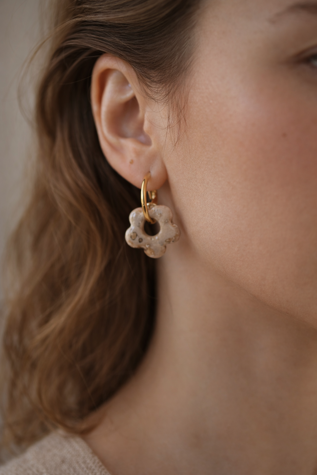Petites créoles en céramiques émaillées avec anneau en acier inoxydable.